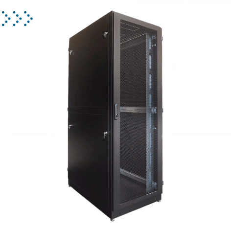 Шкаф серверный напольный 42U (600 × 1000) дверь перфорированная, задние двойные перфорированные, цвет черный