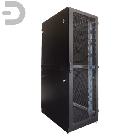 Шкаф серверный напольный 42U (800 × 1000) дверь перфорированная, задние двойные перфорированные, цвет черный