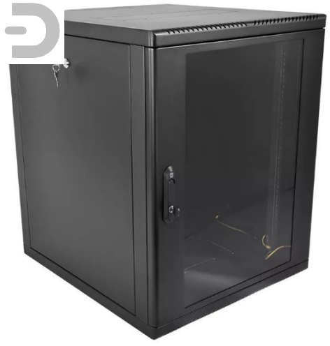Шкаф телекоммуникационный настенный разборный 15U (600 × 520) съемные стенки, дверь стекло, цвет черный