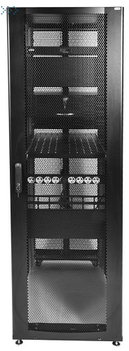 —Шкаф серверный ПРОФ напольный 42U (600x1200) дверь перфор., задние двойные перфор., черный, в сборе ШТК-СП-42.6.12-48АА-9005