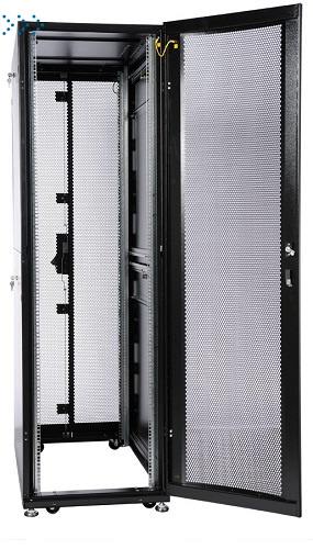 Шкаф серверный ПРОФ напольный 48U (600x1000) дверь перфор., задние двойные перфор., черный, в сборе